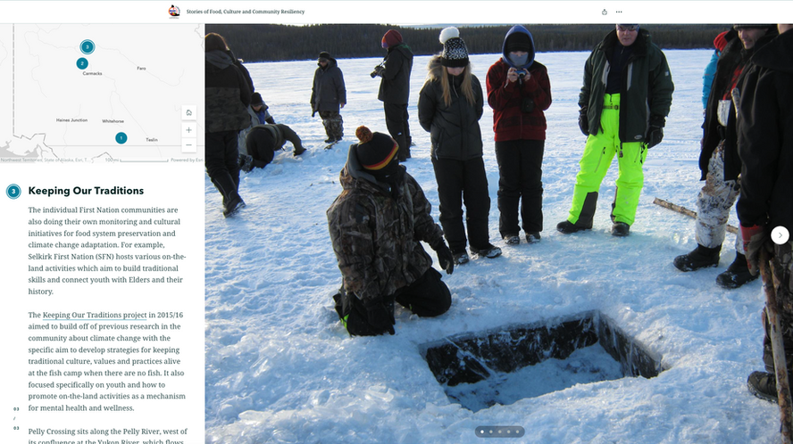 Two knowledge mobilization projects about climate change adaptation and food security in Yukon and NWT, involving various training activities, knowledge product design, digital story mapping, and more.